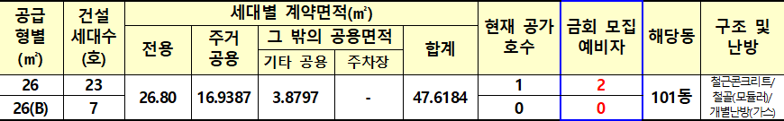 | 전용면적(㎡) | 26.8 ~ 26.8 |